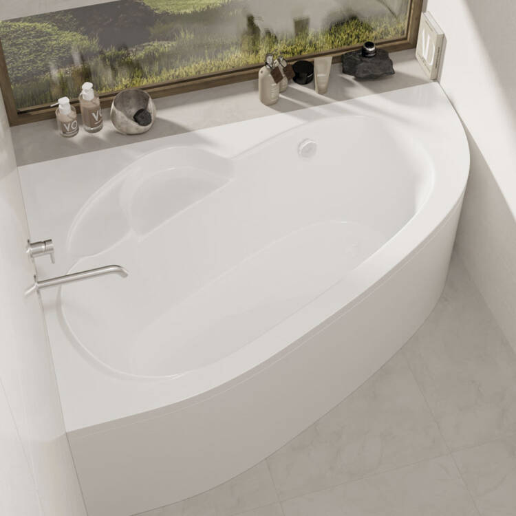 Ассиметричная ванна: несмотря на свои размеры, эти ванны, специально спроектированные для маленьких ванных комнат, гарантируют комфорт больших ванн.